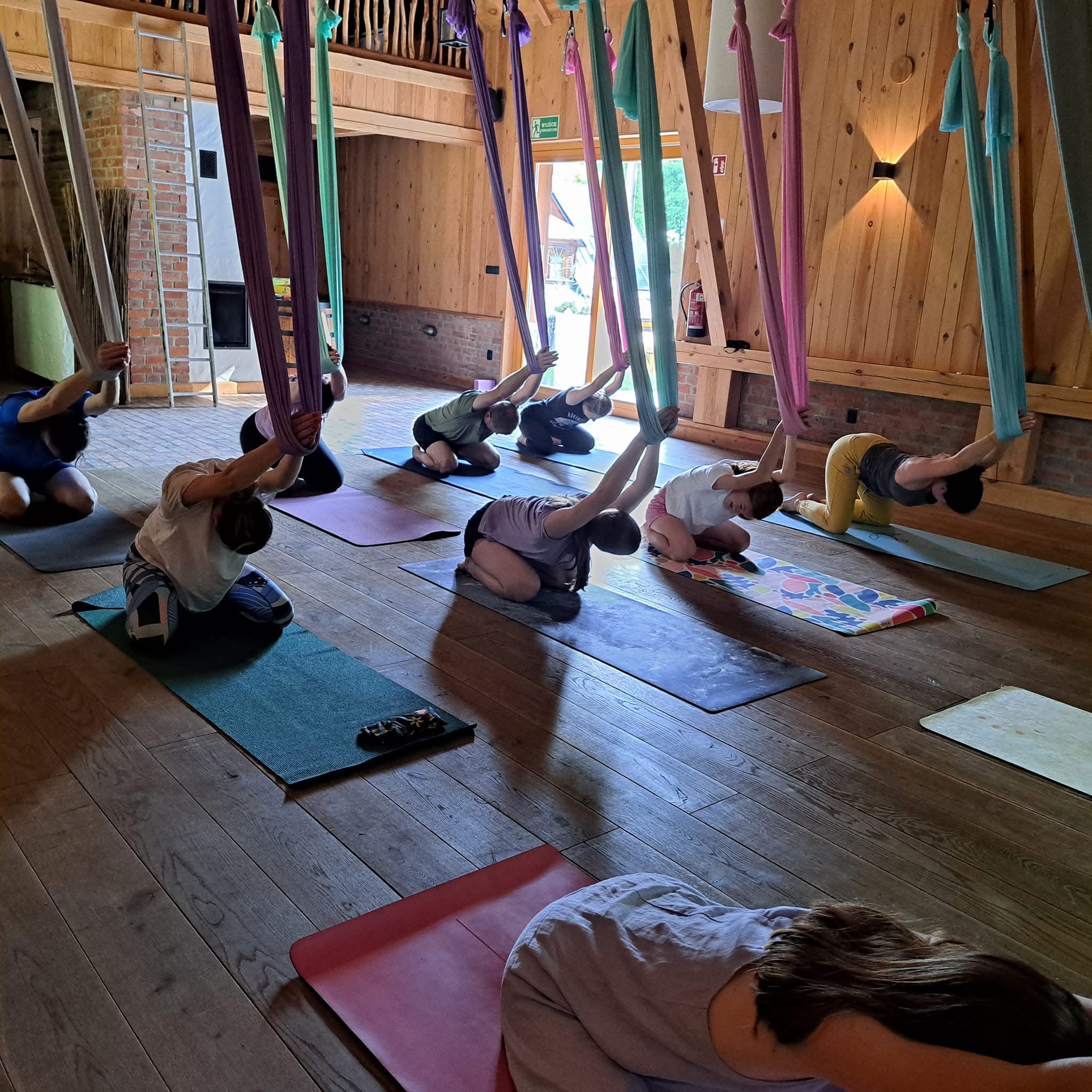 Tym razem wakacyjny program rozwinęliśmy o nowe formy wspólnej praktyki – połączyliśmy rodziców z nastolatkami, tworząc przestrzeń do budowania relacji i wzajemnego zrozumienia poprzez jogę i świadomy ruch, które prowadziła Magda Sobczyk. Sesje na hamakach i matach stały się okazją do wspólnego ruchu, zabawy i bycia tu i teraz. W tym samym czasie młodsze dzieci poznawały świat uważności pod okiem Aurelii Szokal.